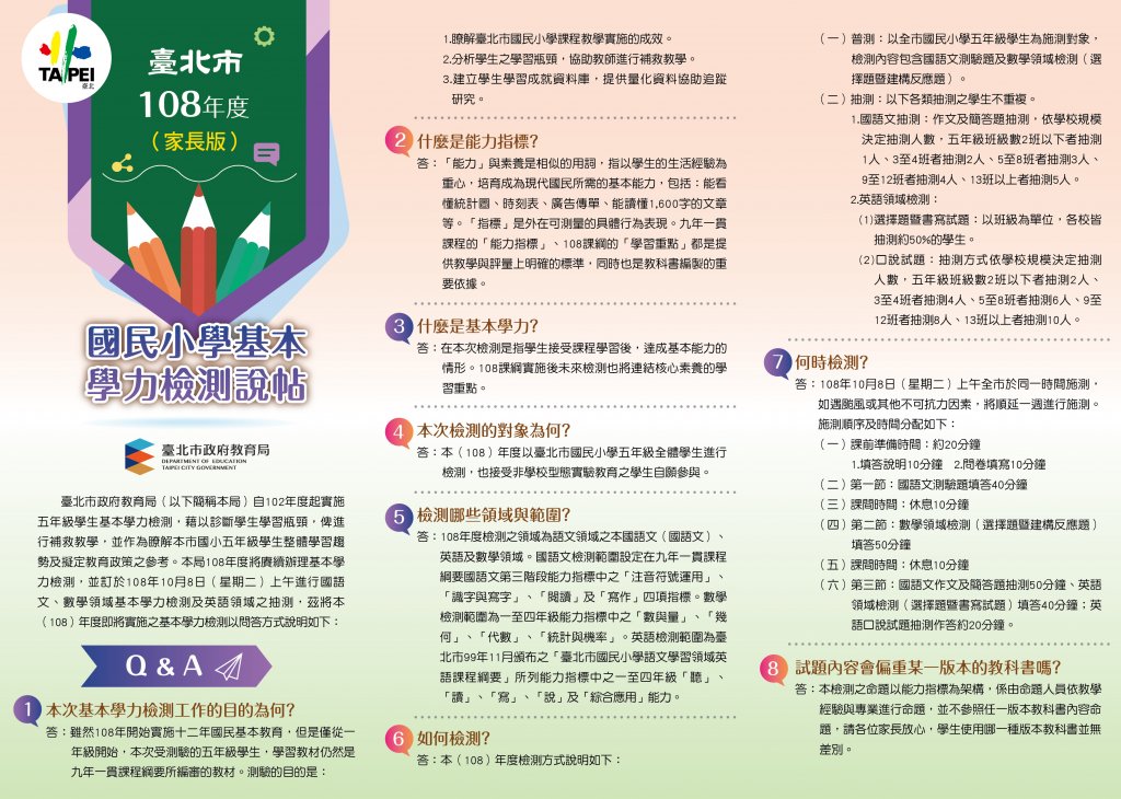 四、本市108年度家長版基本學力檢測紙本說帖將於108年8月29