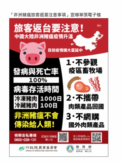 防範中國非洲豬瘟疫情,出國請勿攜帶肉品回來