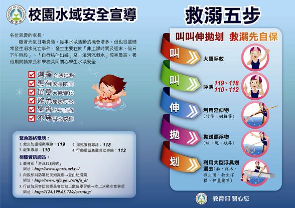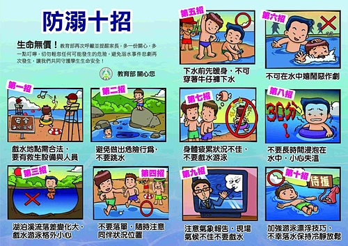 為了讓學生方便記誦,教育部提出「救溺五步、防溺十招」