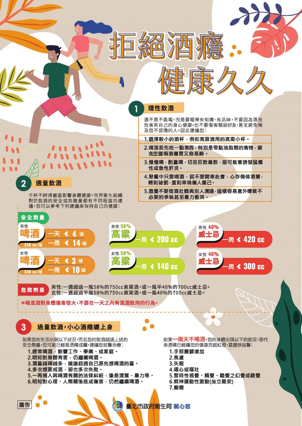 一、依衛福部109年度衛生教育主軸宣導計畫暨本局及教育局 109年9月16日校園健康服務工作小組109年度第1次聯繫會 議決議辦理。 二、為提升青少年成癮防治因應能力,請本市各級學校、教育 局及所屬單位協助宣導青少年對網路及酒精成癮的認識, 即早建立相關衛教觀念,避免成癮問題孳生。