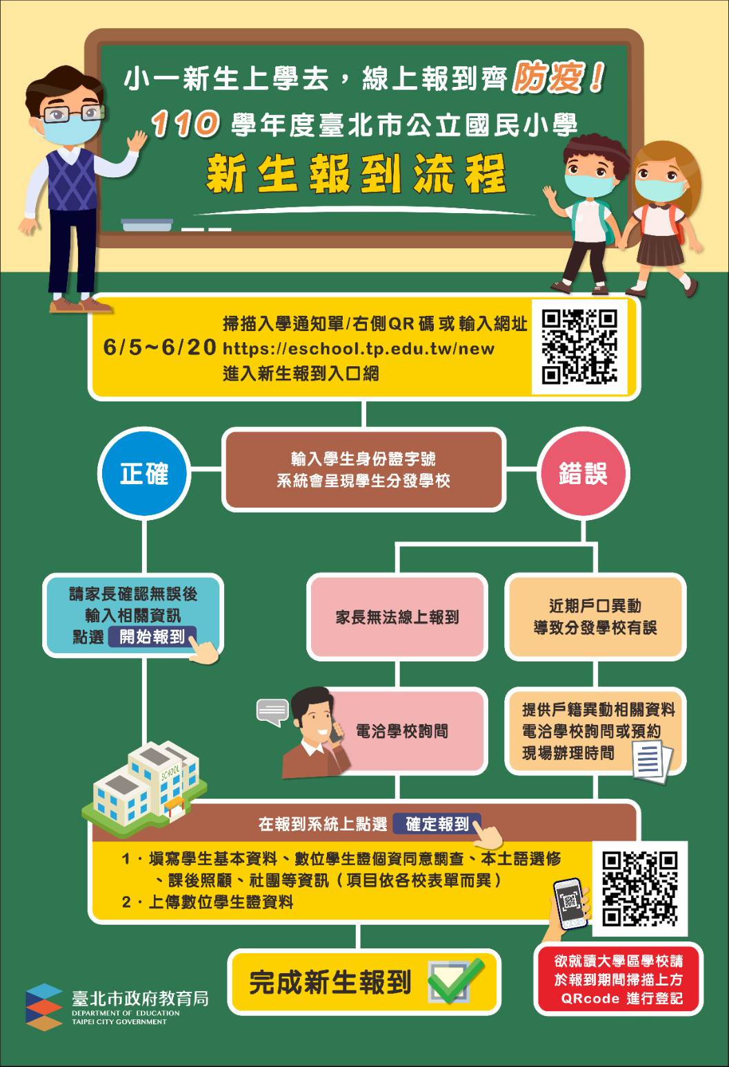 新生報到入口網網址: https://eschool.tp.edu.tw/new/343606