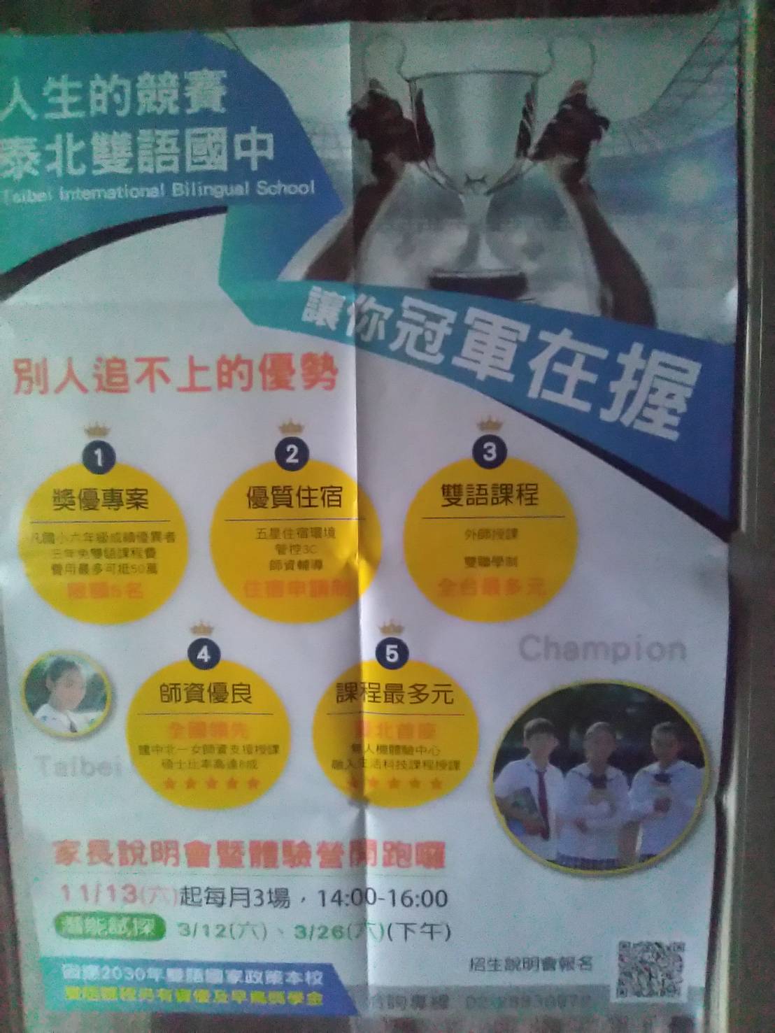 泰北雙語國中自11/13(六)起,每月辦理三場家長說明會暨體驗營活動,歡迎家長參加。