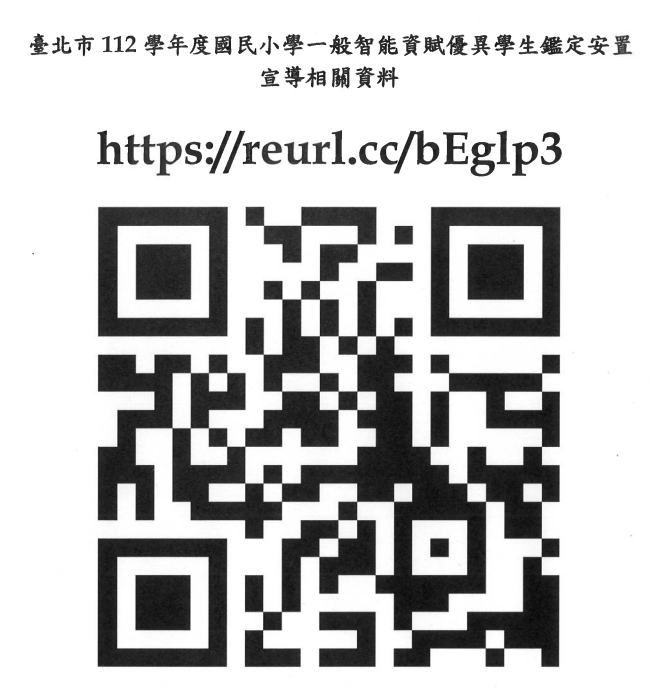 本市112學年度國民小學一般智能資賦優異學生鑑定安置 宣導資料業放置網站供下載參閱