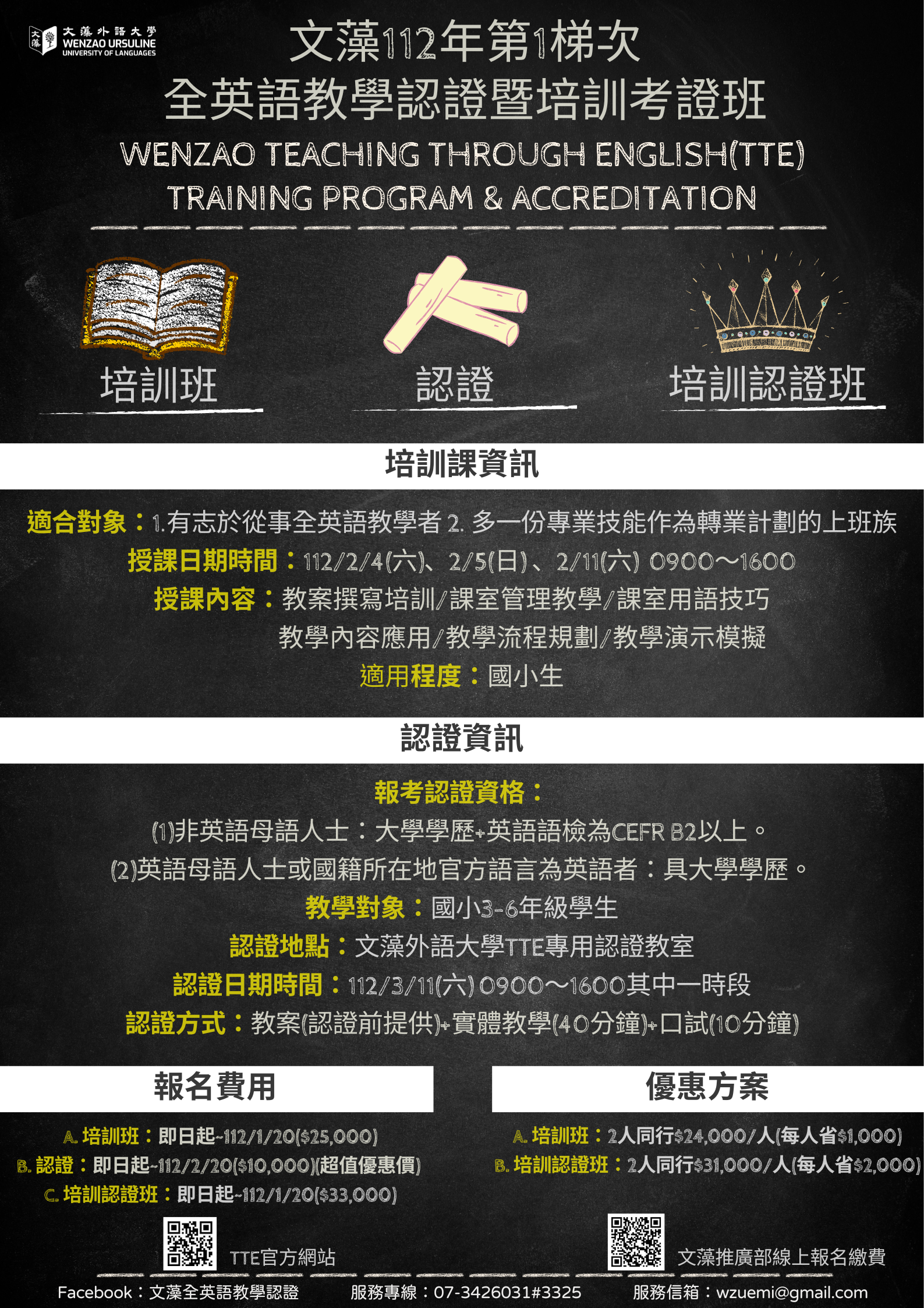 (一)為台灣首創之全英語教學師資認證暨培訓課程(全英語授 課)。